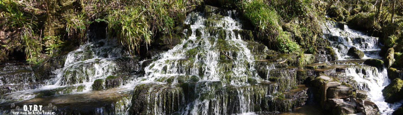 The water just seems to appear out of the side of the hill as if from no where. It cascades down over loss covered rocks and falls into a little collection pool at the bottom which then makes its way under the path and into the river beyond.